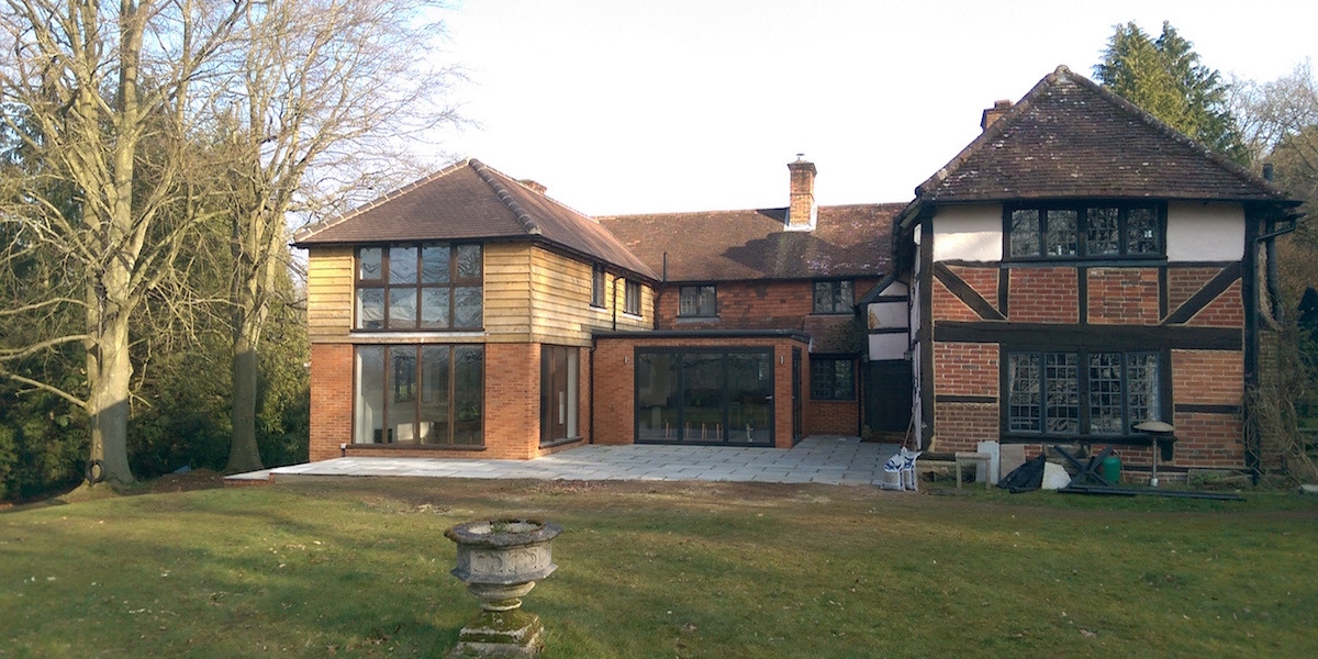 It was an absolute pleasure to be asked to undertake such a project as this, the whole team embraced the build. Although the original part of the house was listed the extensions didn’t have to conform with any of the listed building criteria. The structural design of the new extension called for some out of the ordinary problem solving between ourselves and our structural engineer which was a great challenge. All of the floor to ceiling windows where hand made off site in kiln dried oak and due to their size where assembled, glazed and fitted on site. Many of the original leaded windows that were removed from the original house where allowed to be re-used.