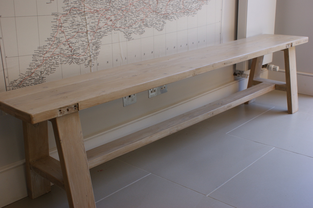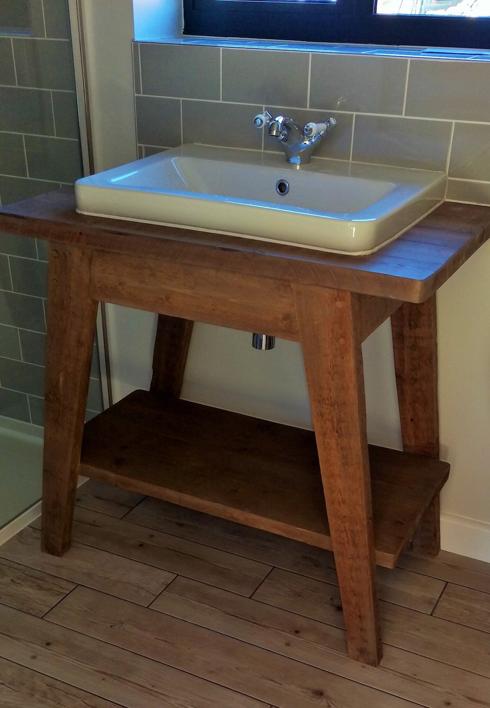 Another recent commission was a washbasin stand, again to compliment the style of shower room it was constructed in reclaimed pine, which was then given a washed effect to bring out the grain in the wood and finally finished with a furniture wax.